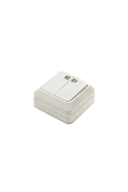 Светлый двойной выключатель с подсветкой, для наружной установки, прочный корпус, две клавиши и быстрая установка без штробления стен.