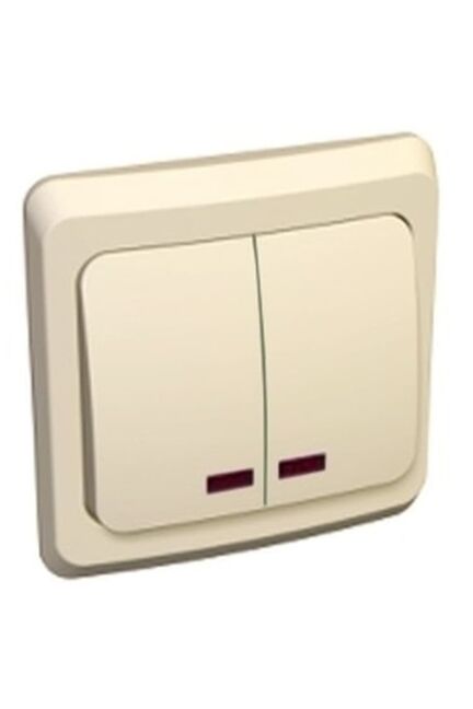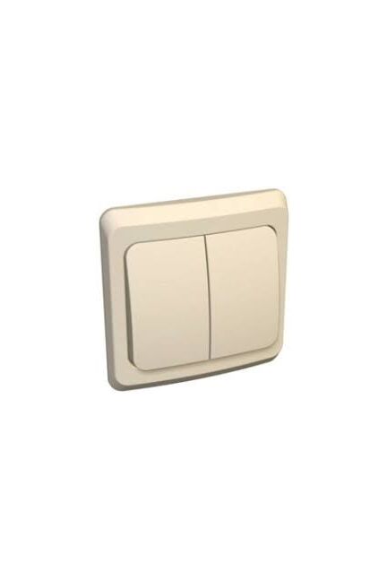 Двухклавишный выключатель с подсветкой, нагрузка до 10А, накладной монтаж, эргономичный и долговечный, цвет кремовый, для удобного управления светом.