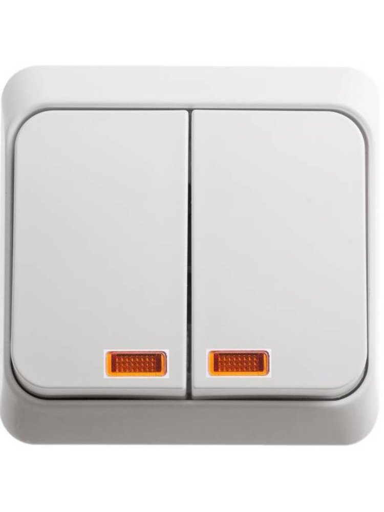 Скрытый 2-клавишный выключатель с подсветкой 10А, для управления двумя зонами освещения. Прочный пластик и удобная индикация.