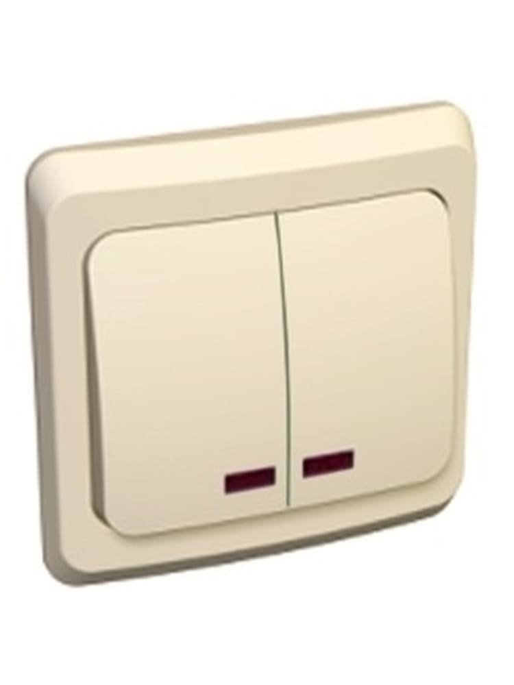 Выключатель 2-клавишный С/У с подсветкой 10А, кремовый Этюд SE