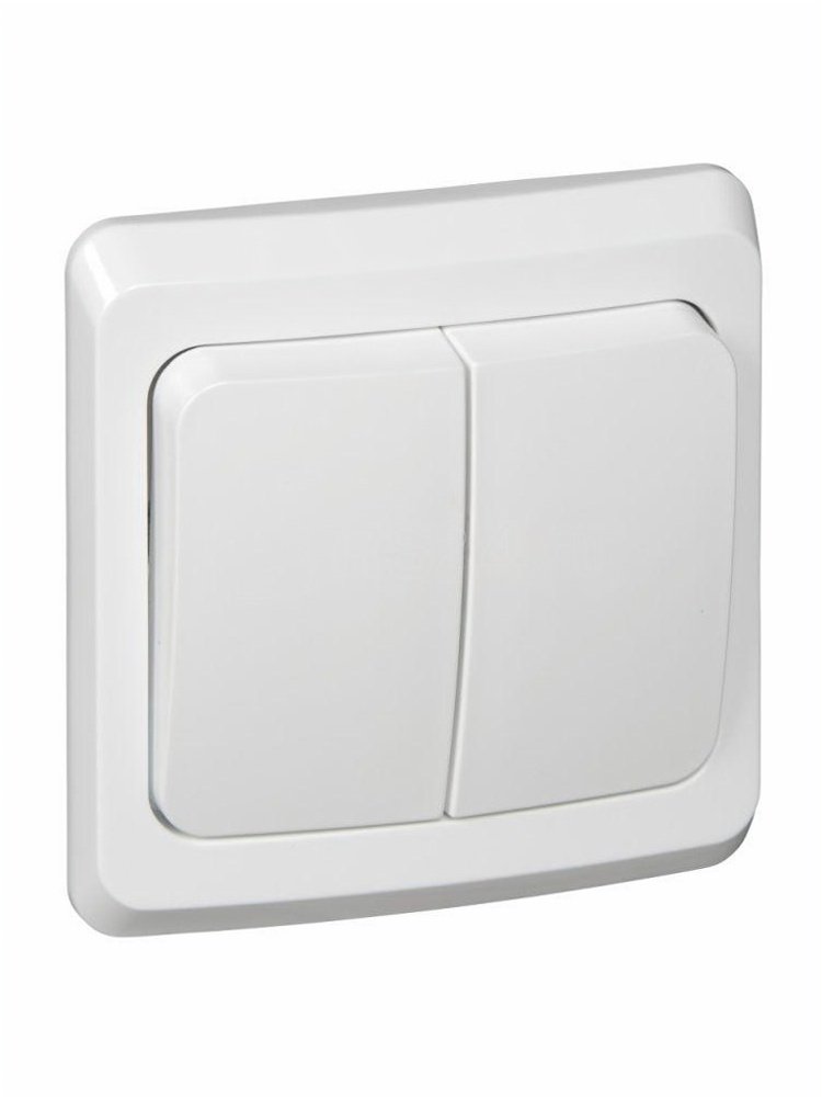 Управление двумя группами освещения, надежный механизм, простой монтаж, универсальный белый цвет, ток до 10А, подходит для любого помещения.