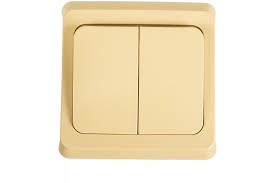 Двухклавишный выключатель 10А с накладным монтажом, кремовый корпус, управление двумя группами освещения, простая установка.
