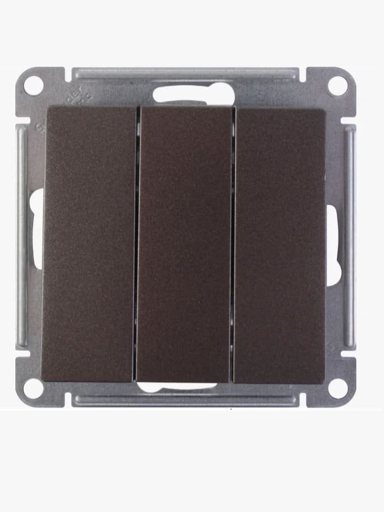 Тройной выключатель цвета мокко — элегантное решение для современного интерьера. Оптимально подходит для управления тремя группами освещения или оборудования в жилых и коммерческих помещениях: квартирах, офисах, магазинах, гостиницах. Благодаря лаконичному дизайну гармонично сочетается с актуальными трендами отделки.