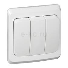 Три клавиши, ток 10А, белый цвет, простой монтаж. Подходит для управления тремя группами освещения в жилых и офисных помещениях.