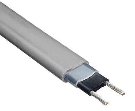 Греющий кабель сконструирован из двух параллельных проводников, по которым при его использовании течёт переменный ток (220 В, 50 Гц). Проводники соединены матрицей из полимерного материала, в который добавлен углерод. Такая матрица представляет собой полупроводник с непостоянным электрическим сопротивлением. Оно меняется по следующим правилам: ― при понижении температуры окружающей среды (и, следовательно, матрицы) её сопротивление растёт. Это влечёт за собой повышение температуры кабеля и канализационной трубы, на которой он закреплён. Эффективный обогрев труб, полов и крыш. Мощность 24Вт/м, защита от мороза, влагостойкость, простой монтаж, низкое энергопотребление.