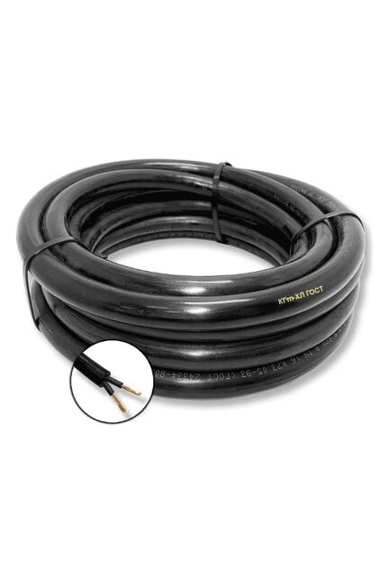 Гибкий силовой кабель 2х1,5 мм² на морозостойкой резине для подключения электроинструмента при температуре до –60°C и высокой влажности.