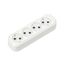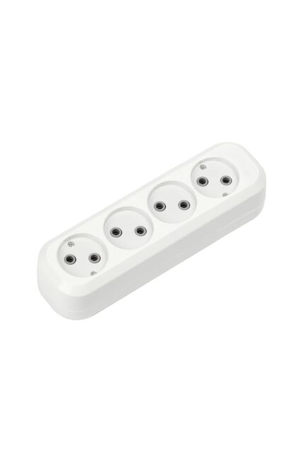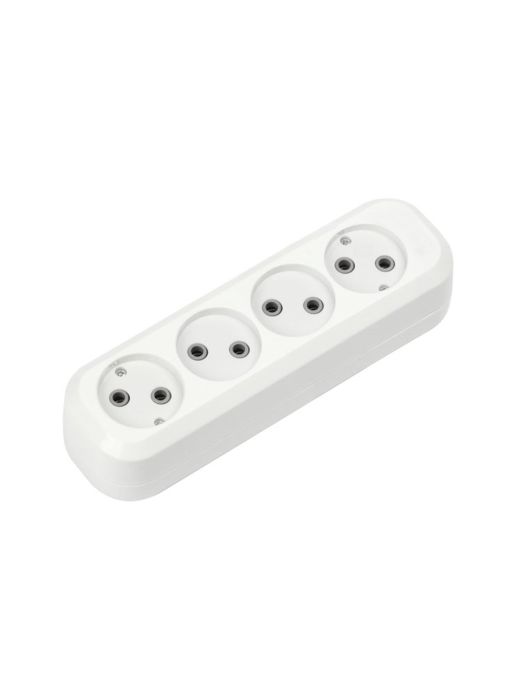 Номинальное напряжение: 250 В; Частота: 50 Гц; Номинальный ток: 10 А; Материал корпуса: АБС-пластик; Климатическое исполнение: УХЛ-3; Степень защиты от влаги и пыли: IP-20; Цвет: белый. 4 гнезда, 10А, прочная конструкция, легко монтируется, подходит для электроинструментов и бытовой техники на стройке и в быту.