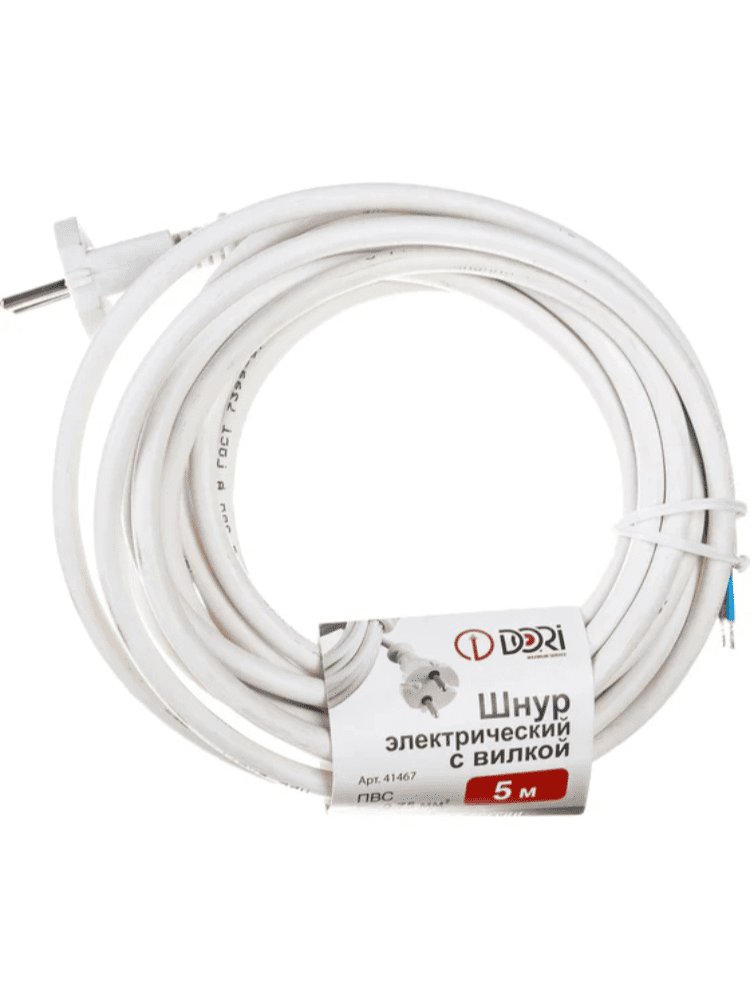 Шнур с вилкой 5м белый ПВС 2*0,75