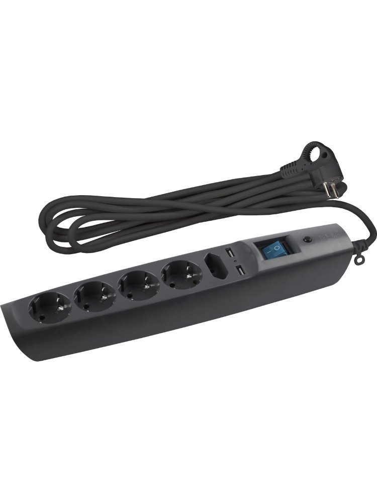 Фильтр сетевой 5 гнезд 2м с з/к 10А 1 USB, 1 TypeC черный(выс.ур.защ.) ЭРА в Комсомольск-на-Амуре