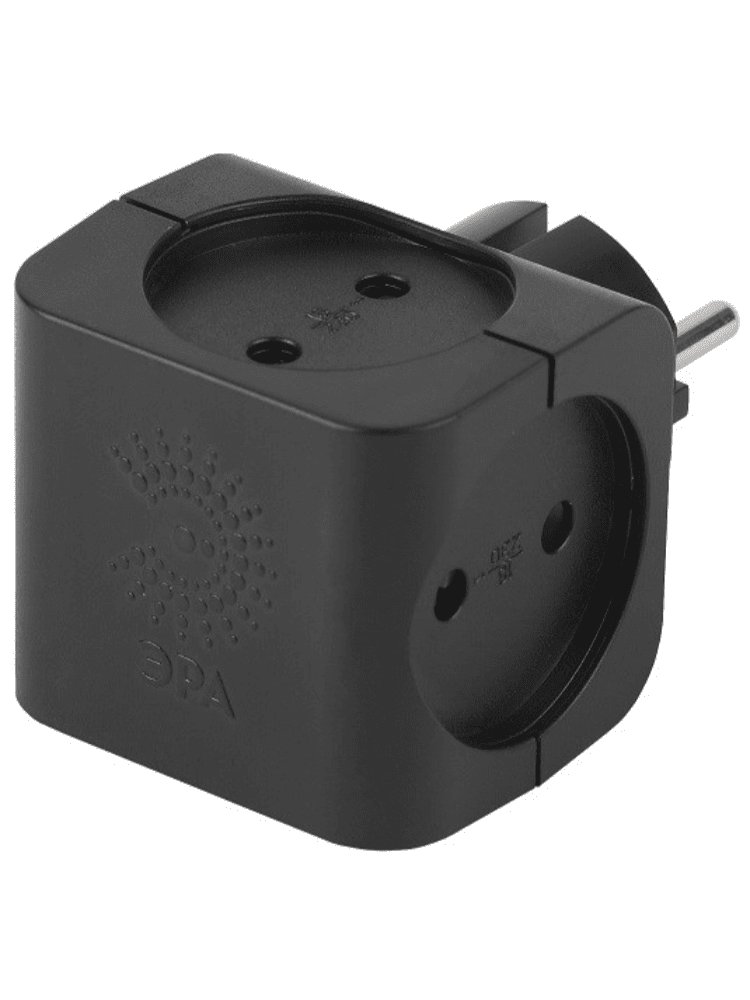 Разветвитель электрический 4 гнезда (четверник) без з/к 16А черный ЭРА