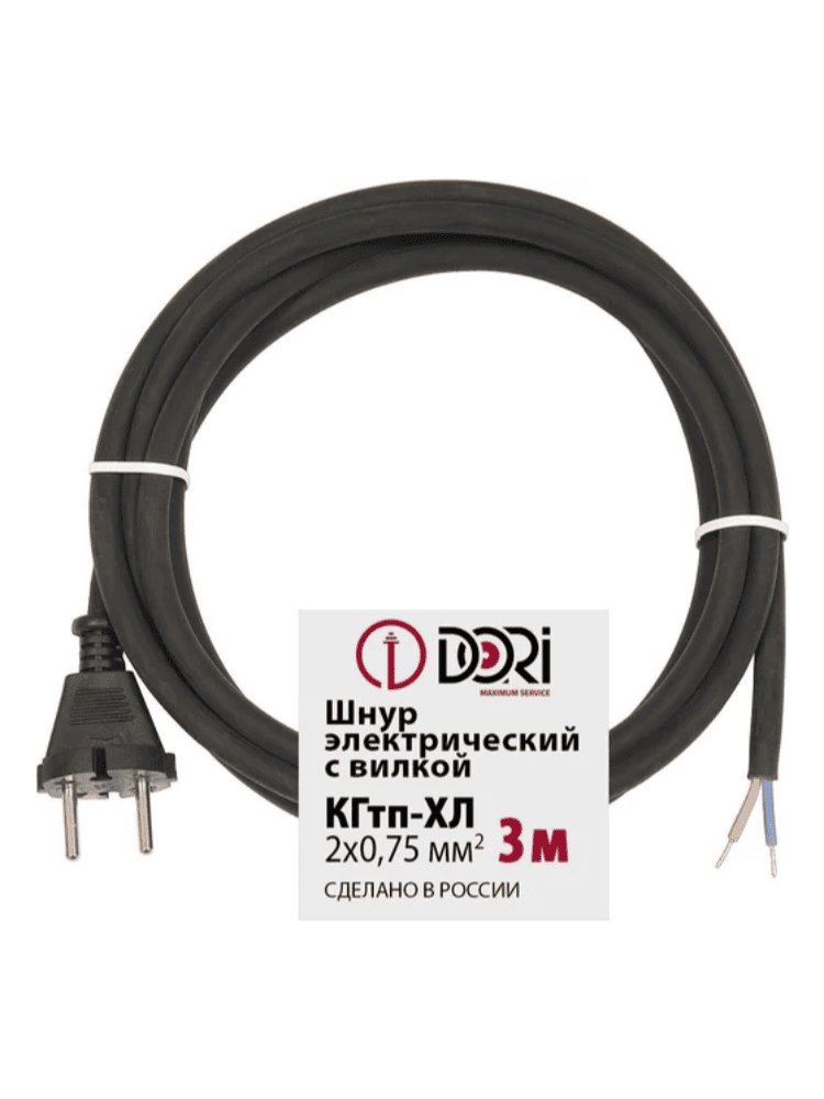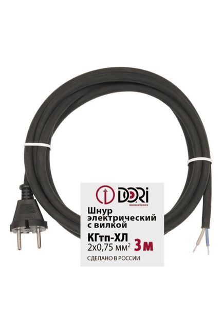 Шнур с вилкой 3м черный КГХЛ 2*0,75 в Комсомольск-на-Амуре
