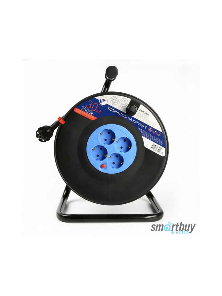 Удлинитель 4 гнезда на катушке 30м с з/к 16А ПВС 3х1,5 IP40 Smartbuy