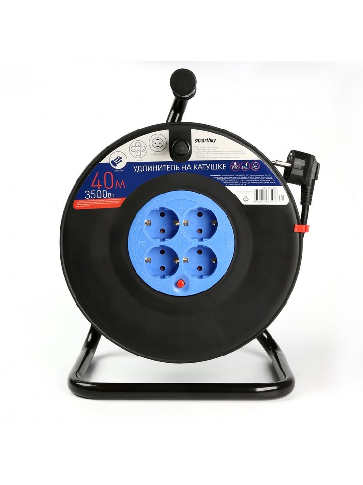 Удлинитель 4 гнезда на катушке 40м с з/к 16А ПВС 3х1,5 IP40 Smartbuy в Комсомольск-на-Амуре