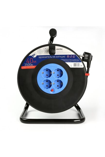 Удлинитель 4 гнезда на катушке 40м с з/к 16А ПВС 3х1,5 IP40 Smartbuy