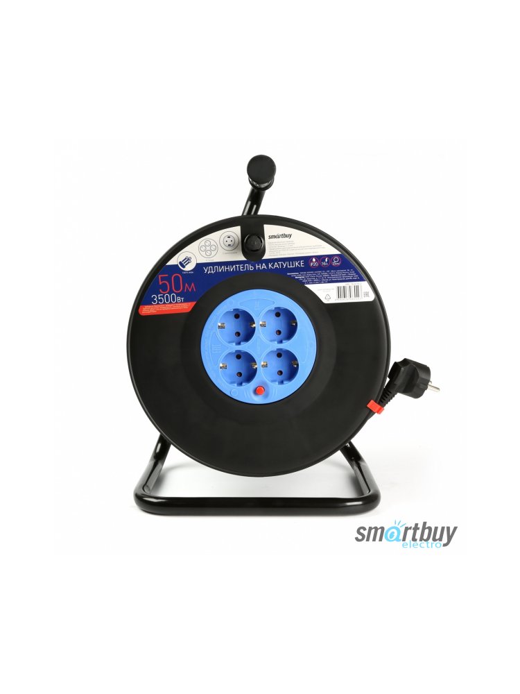 Удлинитель 4 гнезда на катушке 50м с з/к 16А ПВС 3х1,5 IP40 Smartbuy