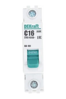 Однополюсный автомат 16А, характеристика C, номинальный ток 4,5кА, для защиты электрических цепей от короткого замыкания и перегрузок.