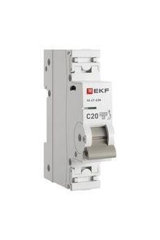 Однополюсный автомат 20A, тип C, 4,5 кА, EKF PROxima. Защита от перегрузок и КЗ, установка на DIN-рейку, для бытовых и промышленных сетей.
