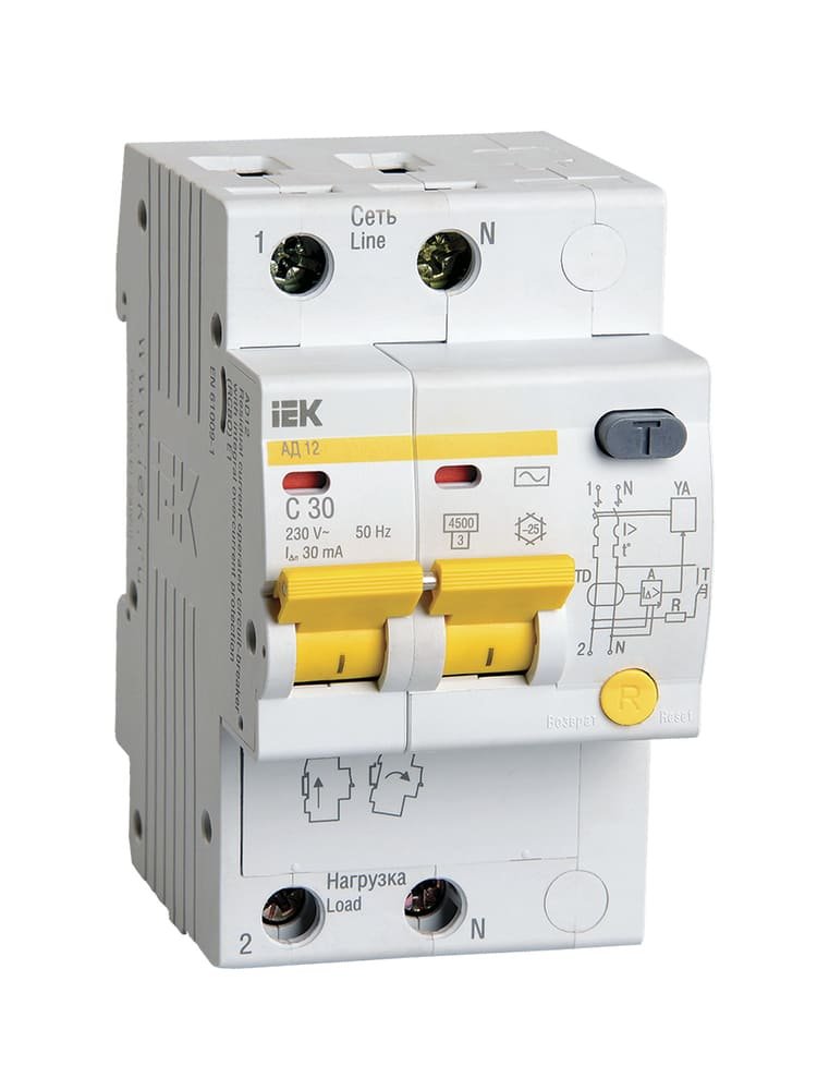 Автомат дифференциальный АД12 2Р 32А 30мА IEK