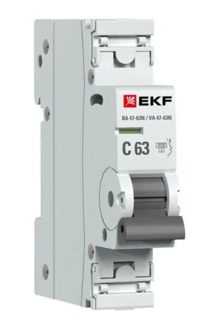 Автоматический выключатель 1P 63A (C) 4,5кА BA 47-63 EKF PROxima для защиты цепей от перегрузок. Надежный, компактный, простой в установке.