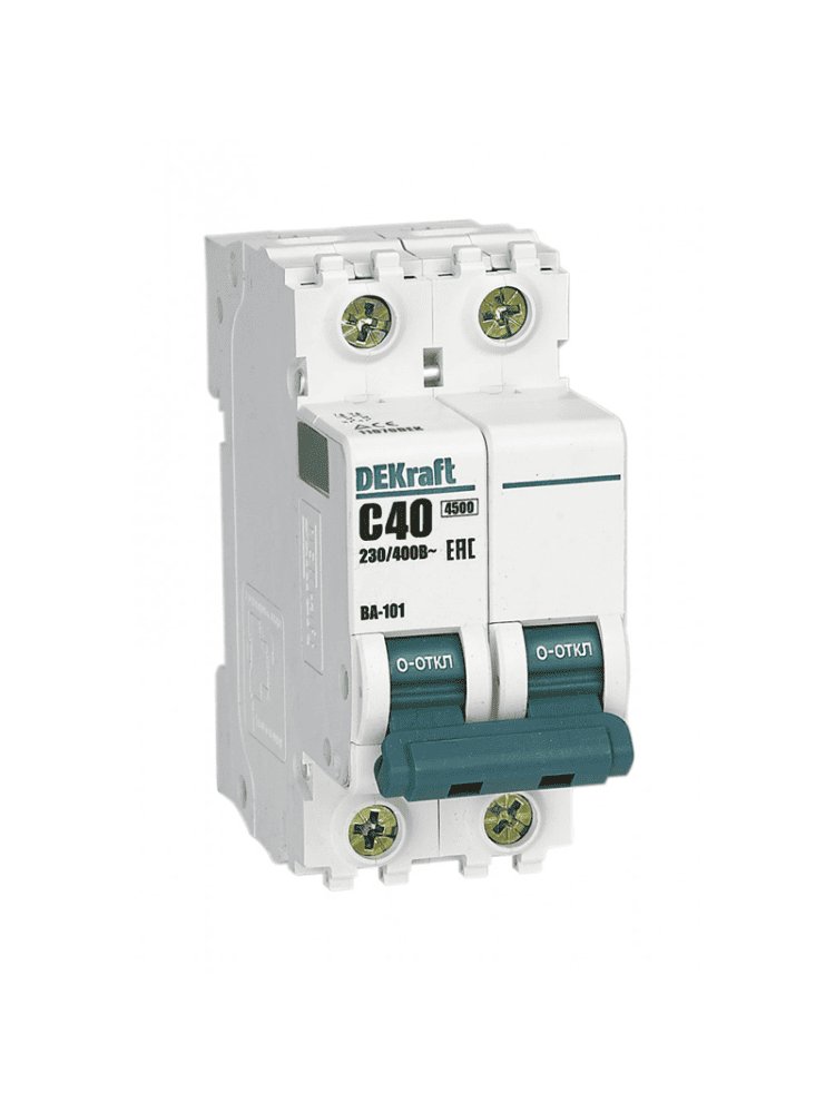 Надежная защита вашей электропроводки от перегрузок и коротких замыканий — обязательное условие безопасности любого строительства и ремонта. Двухполюсный автоматический выключатель 2P 40A (C) 4,5кА BA-101 DEKraft идеально подходит для жилых домов, коммерческих объектов, мастерских и производственных помещений с напряжением до 400 В. Устройство быстро и точно реагирует на аварийные ситуации, предотвращая возгорания и выход из строя техники.
