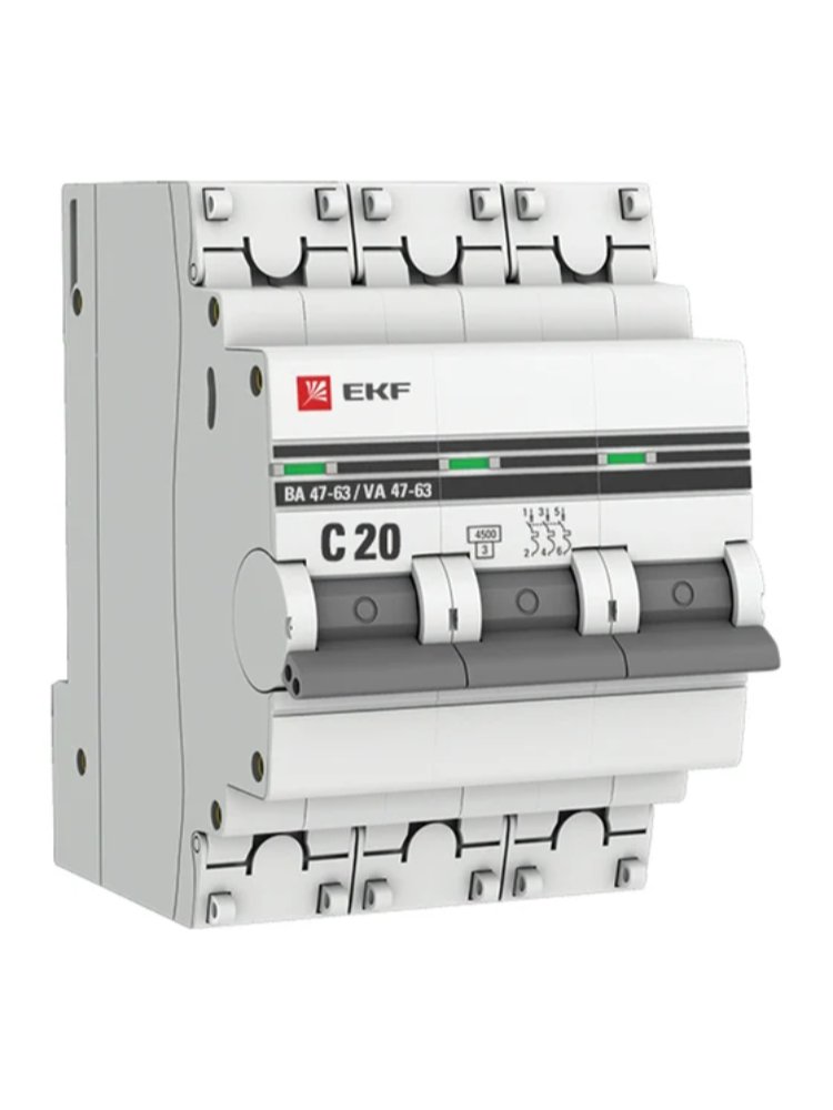 Автомат 3P 20A (C) 4,5кА BA 47-63 EKF PROxima – надежный выключатель для защиты цепей от перегрузок. Номинальное напряжение 400 В, установка на DIN-рейку.