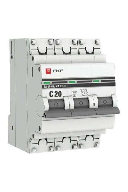 Автомат 3P 20A (C) 4,5кА BA 47-63 EKF PROxima – надежный выключатель для защиты цепей от перегрузок. Номинальное напряжение 400 В, установка на DIN-рейку.