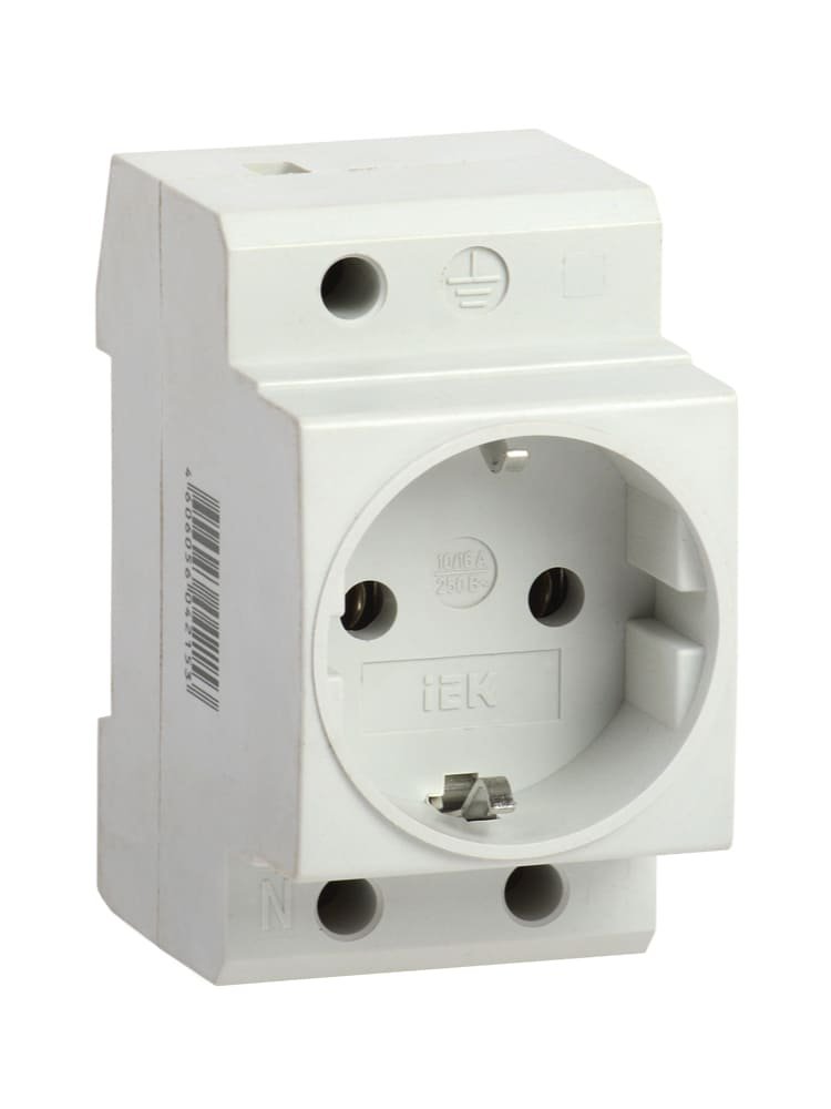 Розетка на DIN-рейку IEK с заземлением, максимальный ток 16А, напряжение 220В. Компактная, безопасная, удобна для монтажа в электрощите.