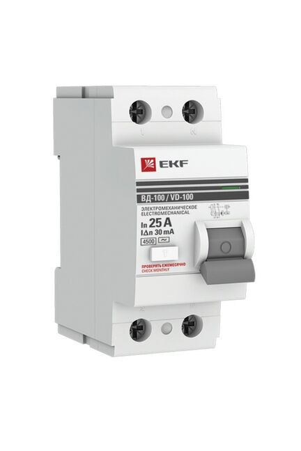 Автомат дифференциальный УЗО ВД-100 2Р 25А 30мА EKF PROxima