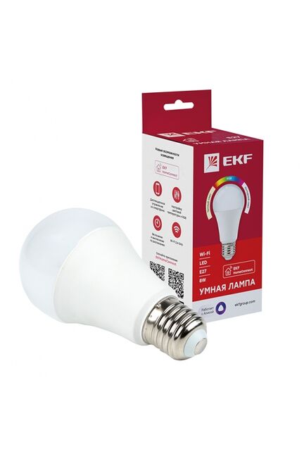 Умная лампа EKF Connect E27 позволяет изменять цветовую температуру, цвет и яркость, чтобы создать ту атмосферу, которая нужна в данный момент. Умными лампами можно дистанционно управлять по Wi-Fi с помощью мобильного приложения EKF Connect для iOS и Android. В приложении можно устанавливать расписание включения и выключения. Также поддерживается голосовое управление с помощью Алисы от Яндекса, Маруси от VK и Салюта от Сбера. Сценарии позволяют управлять несколькими устройствами с помощью одной голосовой команды или нажатия кнопки.