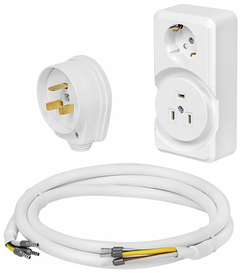 Комплект для подключения электроплиты (вилка 2P/PE+комби розеткаОУ+кабель 2м) 32А 220В