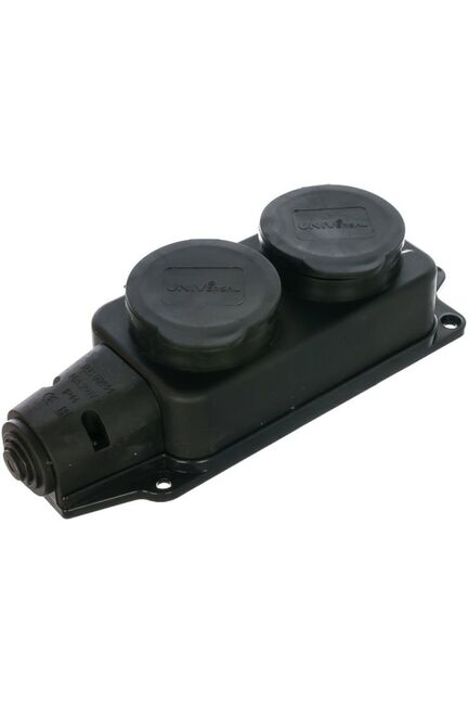Надежная двойная розетка с заземлением и повышенной влагозащитой IP44 — идеальный выбор для электрического подключения в гараже, мастерской, на строительной площадке, а также во влажных и открытых помещениях. Благодаря прочному каучуковому корпусу и защитной крышке розетка устойчива к ударам и агрессивным условиям эксплуатации.