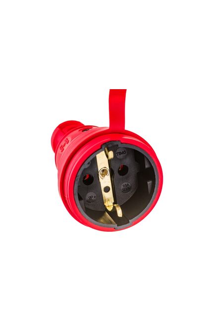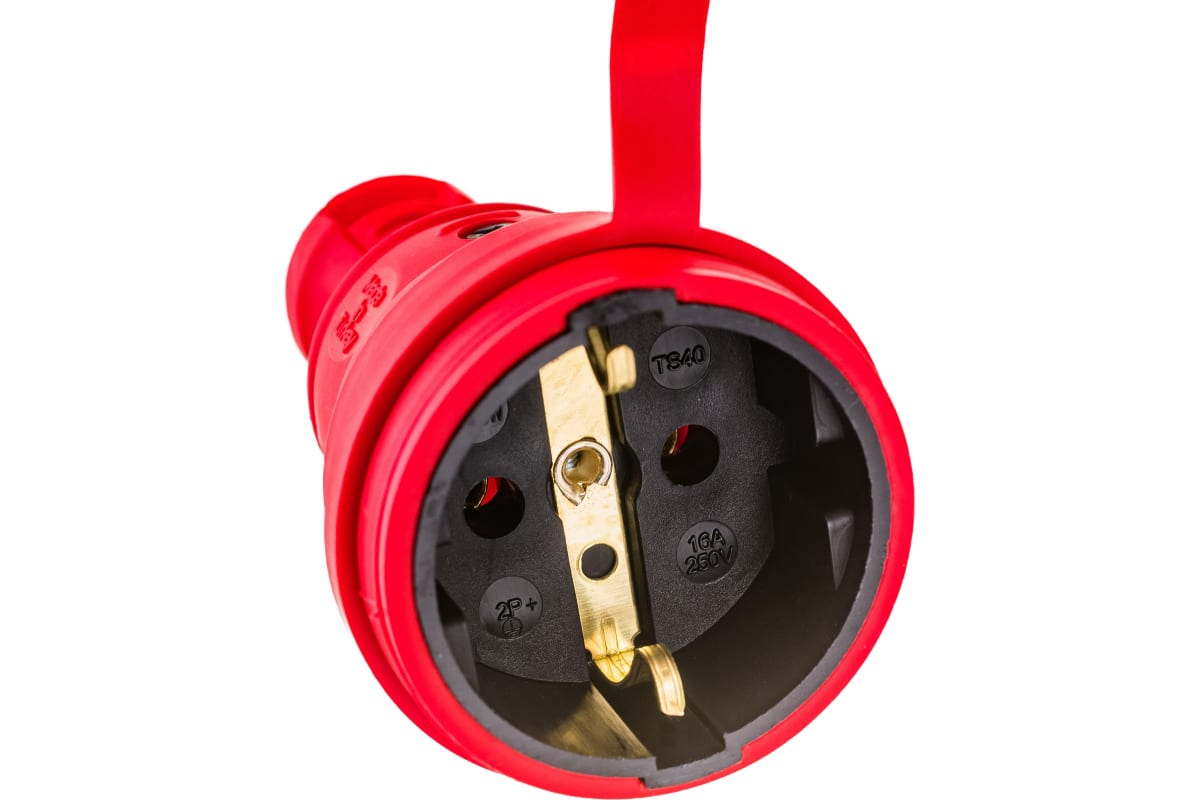 Розетка 1 гнездо с заглушкой з/к каучуковая 2P+PE 16A IP44 красная ЭРА