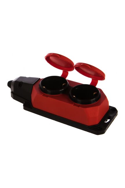 Ударопрочная розетка на 2 гнезда с заглушкой, з/к, IP44, 16А для надёжного подключения электроприборов в сложных условиях внутри и снаружи помещений.