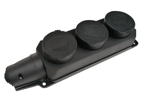 Розетка 3 гнезда с заглушкой з/к каучуковая 2P+E 16A IP44 9323 IN HOME