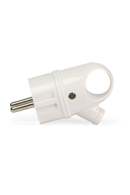 Номинальное напряжение: 250 В; Частота: 50 Гц; Номинальный ток: 16 А; Материал корпуса: АБС-пластик; Климатическое исполнение: УХЛ-3; Степень защиты от влаги и пыли: IP-20; Цвет: белый. Угловая вилка 16А с заземлением, компактная, устойчивая к нагреву, легко монтируется, безопасная для бытовых и профессиональных нужд.
