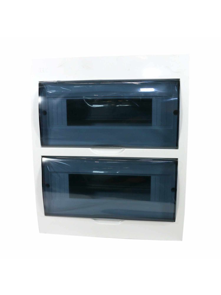 Пластиковый навесной бокс на 24 модуля, степень защиты IP41, черная дверь, белый корпус — для удобного и надежного распределения электроэнергии.