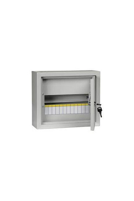 Металлический щиток на 12 модулей, IP31, размер 265×310×120 мм, с замком и клеммами. Для настенного монтажа в жилых и коммерческих помещениях.