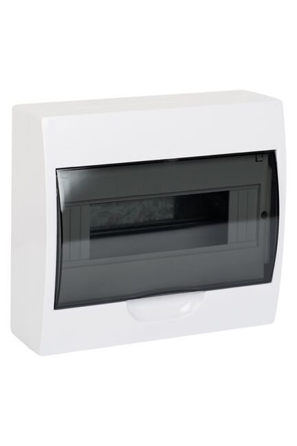 Щит 10 модулей, размер 200×222×95 мм, IP41, белый пластик, прозрачная дверь, монтаж на стену, для квартир и домов, легкий контроль и установка.