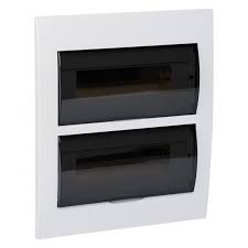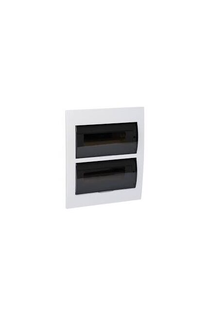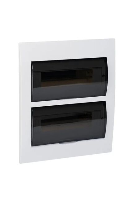 Пластиковый щит на 24 модуля c прозрачной дверцей, скрытый монтаж, IP41, белый, компактность и простая установка для уверенной электробезопасности.