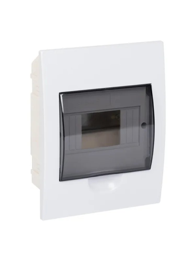 Компактный пластиковый щит на 6 модулей для скрытого монтажа, IP41, прозрачная дверца, удобный контроль и надежная защита электросети.
