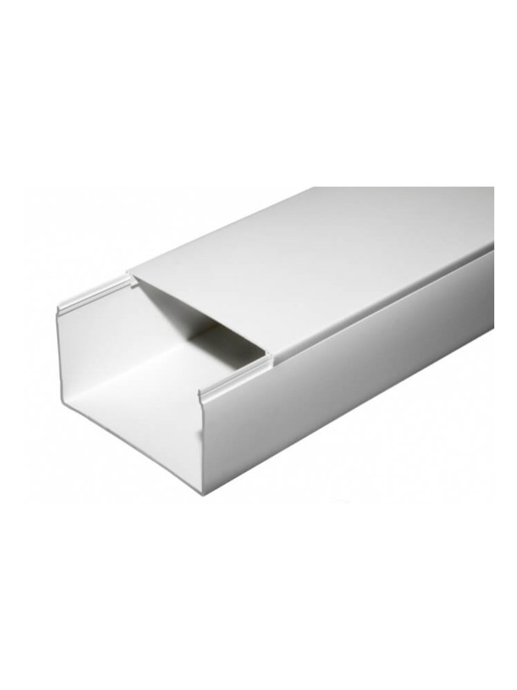Просторный и прочный ПВХ-канал 100×60 мм для аккуратной, безопасной укладки электропроводки и кабелей. Ударопрочный, влагостойкий, белый.