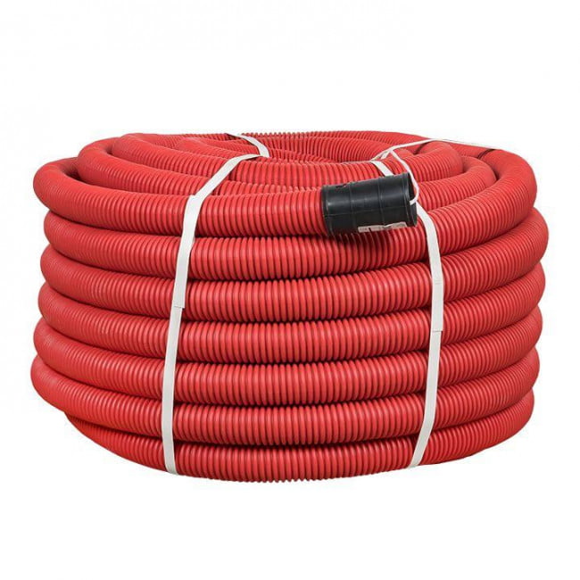 Гофрированная двустенная труба 50 мм, 50 м, с зондом для быстрой протяжки кабеля. Прочная, влагостойкая, для электропроводки в земле и помещениях.