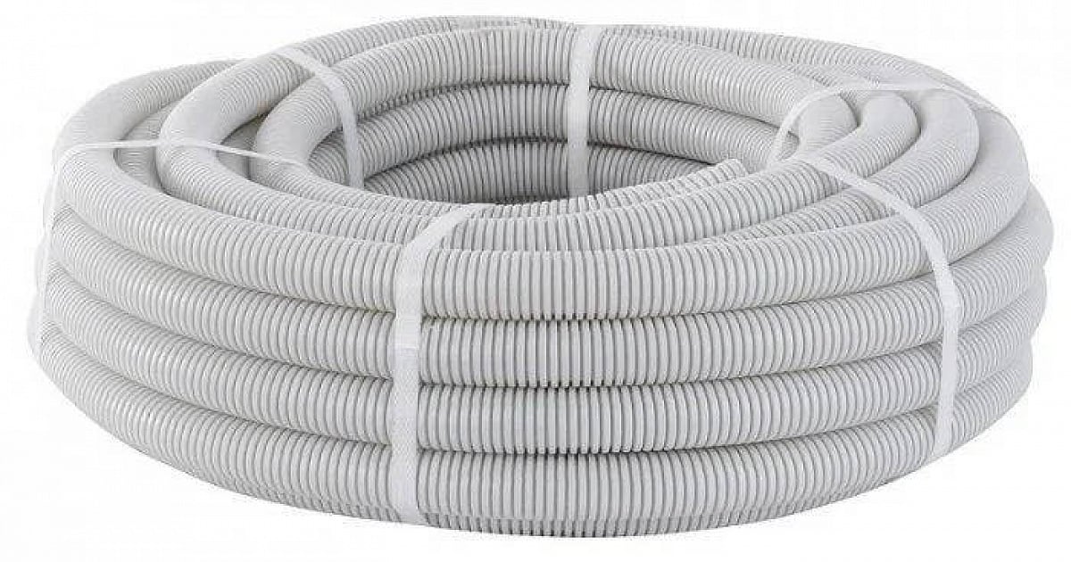 Гибкая ПВХ труба d20 с зондом для быстрой и безопасной прокладки кабеля; длина 100 м, устойчива к влаге и повреждениям.