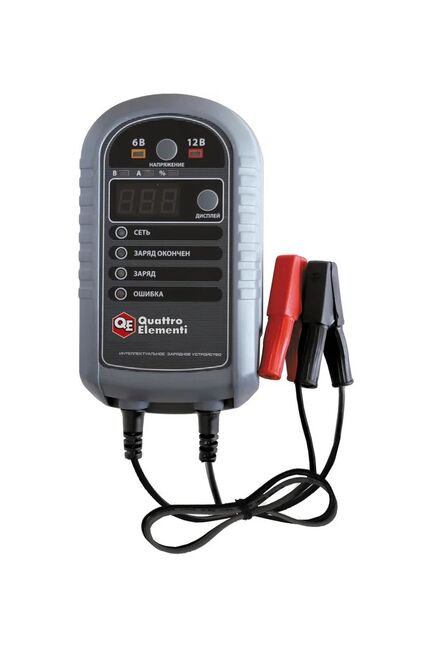 Зарядное устройство QUATTRO ELEMENTI i-Charge 7 полный автомат 771-695 благодаря схеме, основанной на высокочастотном преобразовании бережно снабжает аккумуляторные батареи автомобилей и мотоциклов качественным электрическим зарядом. Подключение к аккумулятору производится посредством специальных зажимов (крокодилов), которые обеспечивают надежный контакт без потери тока номинальным значением 2.5 А и 3 А для двух режимов - 6В и 12 В соответственно. Особенности зарядного устройства QUATTRO ELEMENTI i-Charge 7 771-695 Визуальный контроль Наблюдение за всеми параметрами рабочего процесса зарядного устройства QUATTRO ELEMENTI i-Charge 7 полный автомат 771-695 осуществляется с помощью цифрового дисплея и световых индикаторов. Автоматическое зарядное устройство 12В 7А, с защитой, режимом поддержки заряда и функцией восстановления глубоко разряженных АКБ.