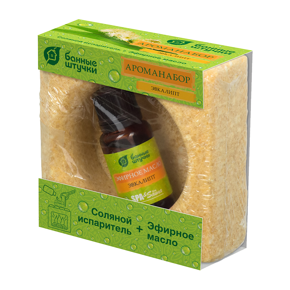 Ароманабор для бани и сауны (соляной испаритель 700 г, масло эфирное Эвкалипт 15 мл) "Банные Штучки"