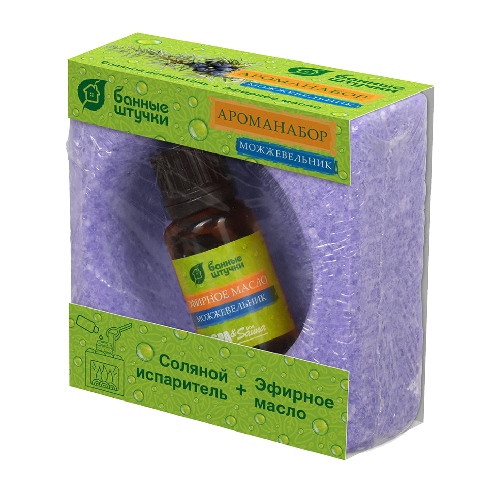Ароманабор для бани и сауны (соляной испаритель 700 г, масло эфирное Можжевельник 15 мл) "Банные Шту