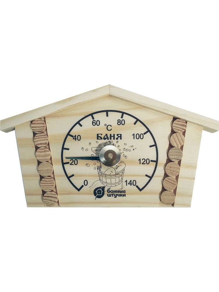 Надёжная защита от запотевания, долговечность оригинального корпуса, декоративное оформление с мотивом русской бани — этот прибор выгодно выделяется среди аналогов. Термометр устойчив к воздействию влаги и температурных перепадов, безопасен для здоровья и отлично впишется в любой интерьер парной.