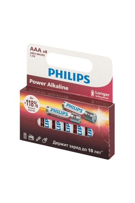Батарейки Philips представляют собой набор из 8 алкалиновых батареек типа AAА с напряжением 1,5V. Они идеально подходят для использования в энергоемких устройствах. Надежные щелочные батарейки AAA, 8 шт. в упаковке. Долго держат заряд даже в энергозатратных инструментах и устройствах, не подводят в работе.