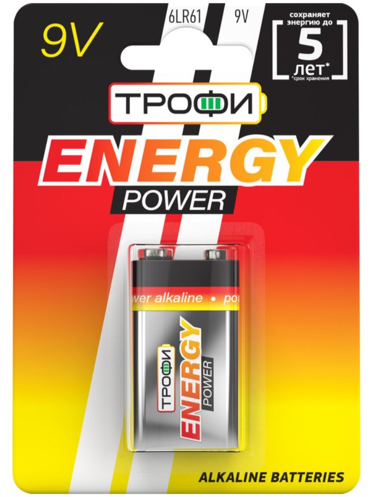 Батарейка Трофи 6LR61-1BL ENERGY POWER Alkaline блистер 1 (крона) в Комсомольск-на-Амуре