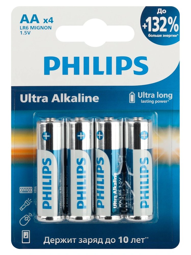 Батарейки Philips представляют собой набор из 4 алкалиновых батареек типа AA с напряжением 1,5V. Они идеально подходят для использования в энергоемких устройствах, таких как электронные игрушки и портативные аудиоплееры. Щелочные батарейки LR6 для инструментов и техники: высокая ёмкость, стабильная работа, идеальны для строительных и бытовых приборов.